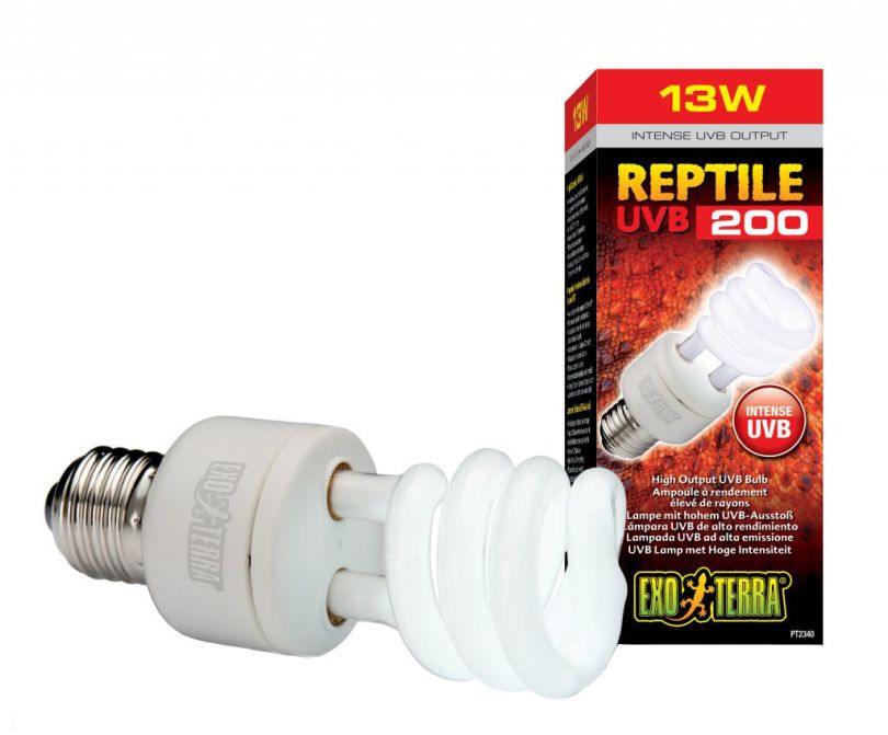 The Exo Terra Reptile UVB200 has a high UVB and therefore a very high D3 yield which enables reptiles to build healthy bones and prevents metabolic bone disease.